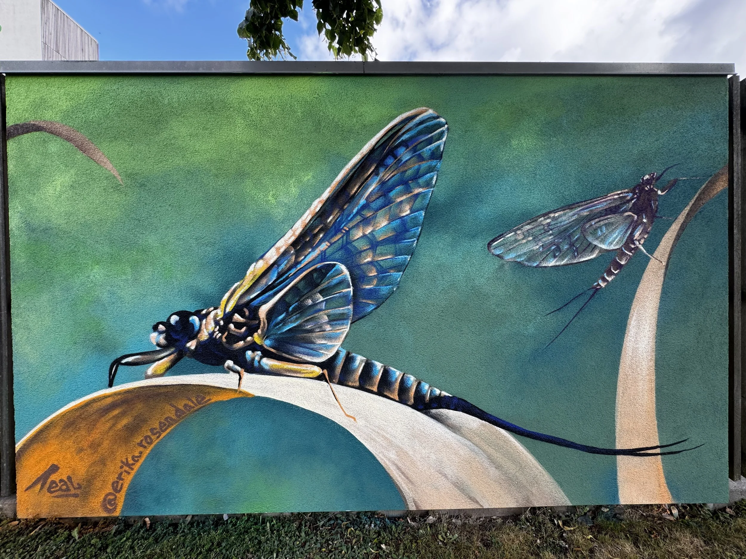 'Engangered Animals Series - Rithrogena germanica - European Mayfly' (2 of 3) - School in Vejle, Denmark - Vejle Street Art Festival, Summer 2025